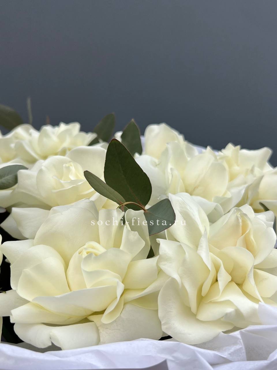 Двадцать семь роз выложены в форме сердца и сохраняют этот силуэт благодаря продуманной сборке. Композиция читается как цельный графичный знак, где каждый бутон занимает своё место в общем рисунке.