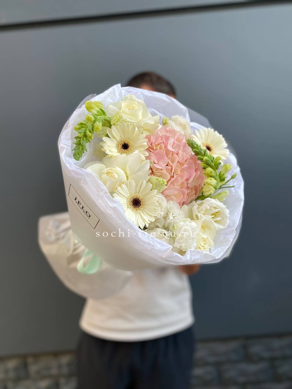 гербера, роза, антиринум(возможна замена), гортензия, эустома, упаковка.