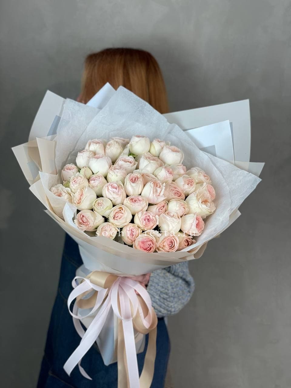 пионовидная кустовая роза Porcelain Lace/бомбастик, лента, авторская упаковка.