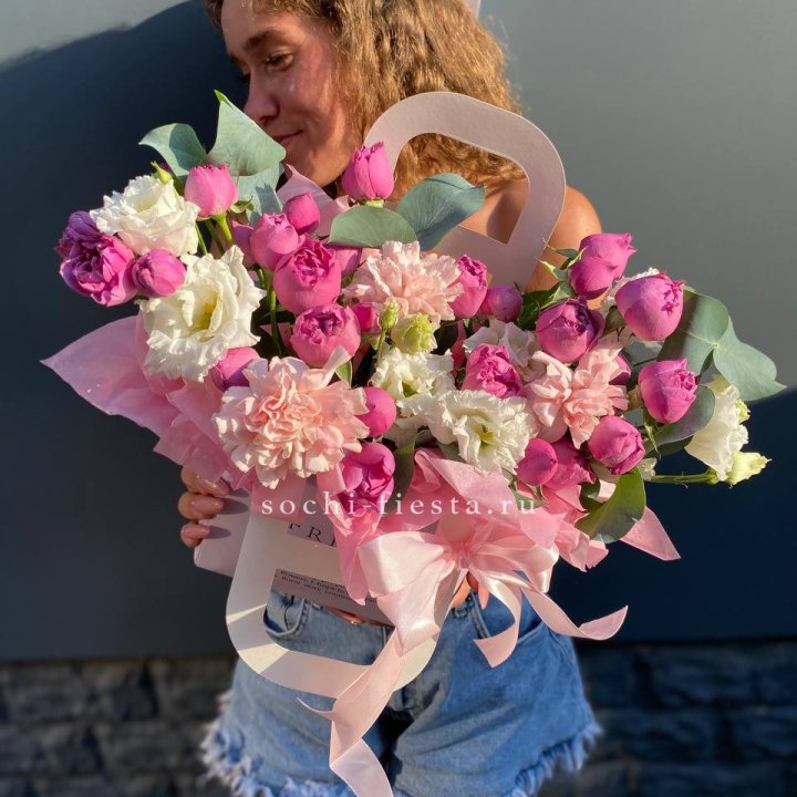 Размер выбирается по повод. Коллеге в Кургане — M или L. Юбилей родителей — XL. Выписка из роддома — L в пудровой палитре. Корпоративный юбилей — XXL. Романтический подарок — M или L в яркой палитре.