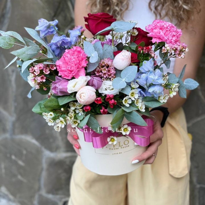 Шляпная коробка в студии Кургане закрепилась как практичный формат для корпоративных и семейных подарков. Композиция с флористической губкой, готовая к дарению без вазы. Удобно для офиса и для получателя, не требует ухода в первые 3-5 дней.
