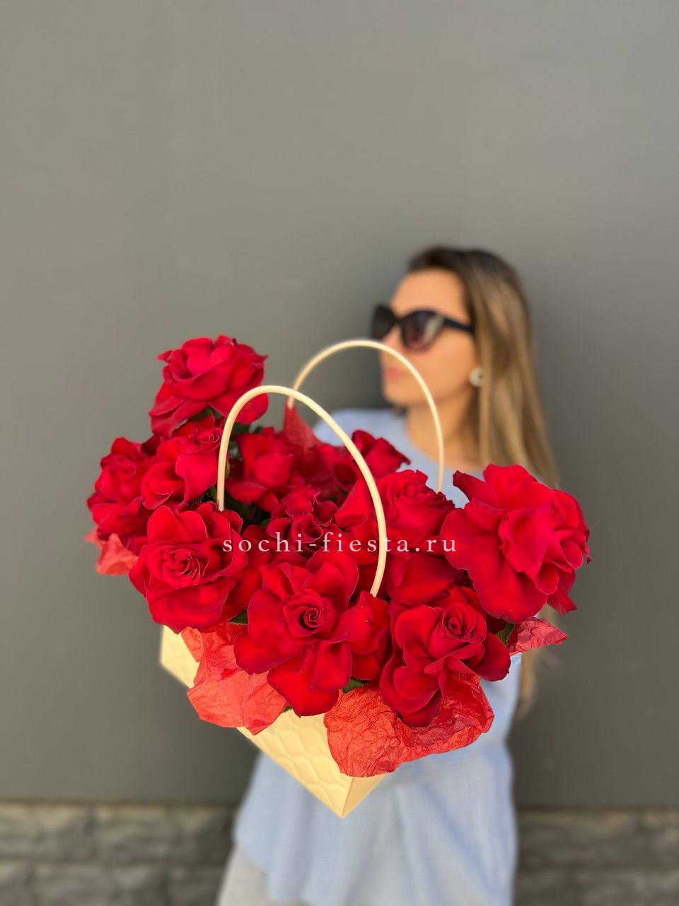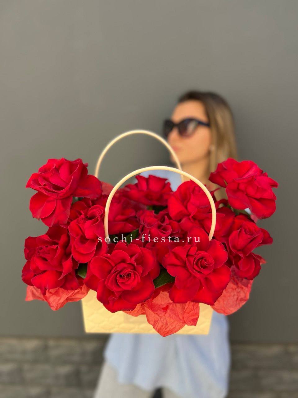 Для заказа товара "Французские розы в сумочке" с доставкой в Кургане нажмите в корзину