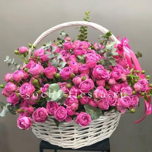 555 роз, зелень (папоротник или эвкалипт, в зависимости от сезона) оформление в корзину. Длина надписи не должна превышать 4 букв.