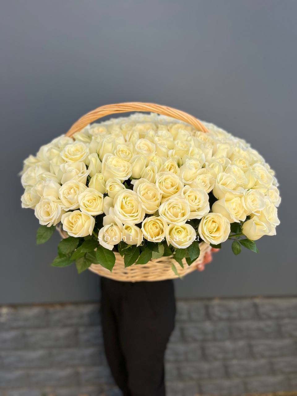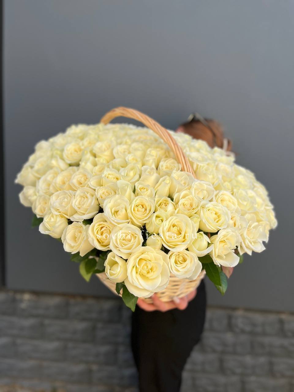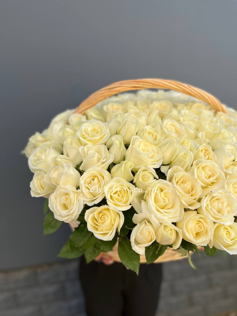 Для заказа товара "151 белая роза в корзине " с доставкой в Кургане нажмите в корзину