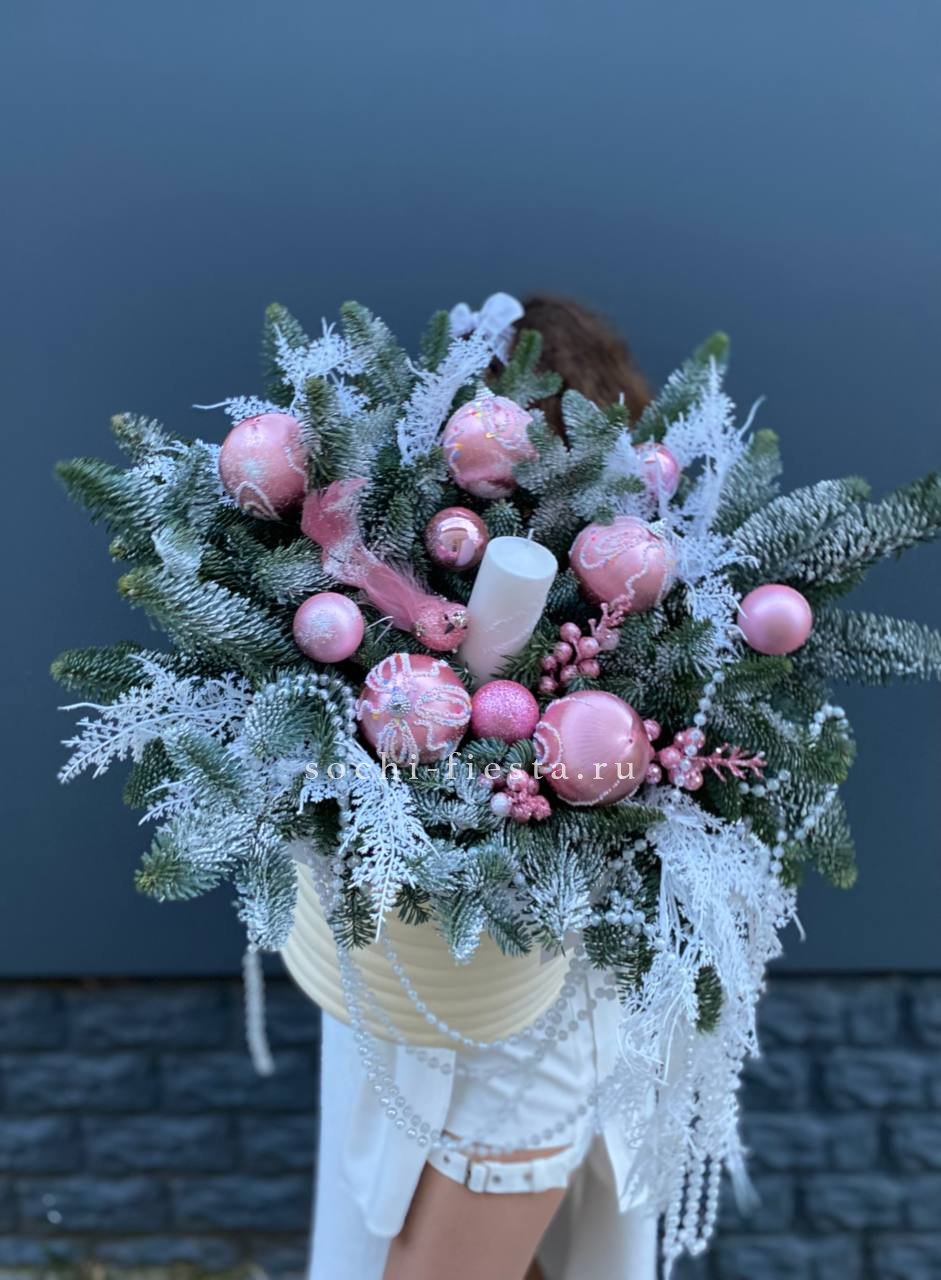 нобилис, цилиндр, оазис, свечи, новогодние игрушки, декор ВНИМАНИЕ! Готовая композиция (декор) может иметь незначительные внешние отличия от примера на фотографии.