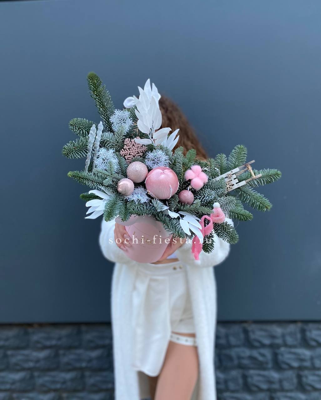 нобилис, цилиндр, оазис, сани, новогодние игрушки, декор ВНИМАНИЕ! Готовая композиция (декор) может иметь незначительные внешние отличия от примера на фотографии.
