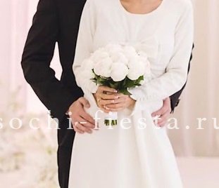 Двадцать один белоснежный пион собран в пышную шарообразную композицию которая заполняет пространство волнами многослойных лепестков. Минималистичное решение для свадебного дня.