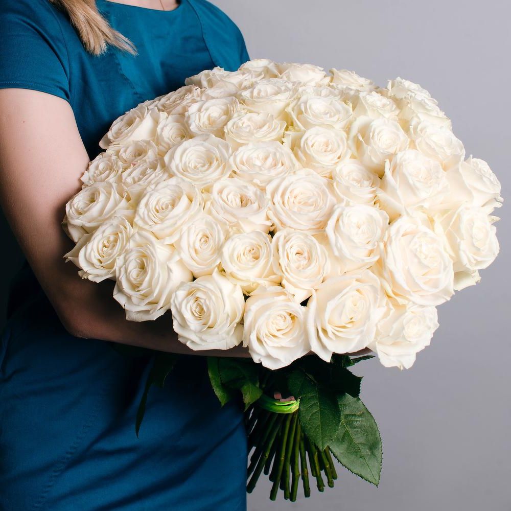 белая роза 303шт., оформление в букет или корзину на выбор.