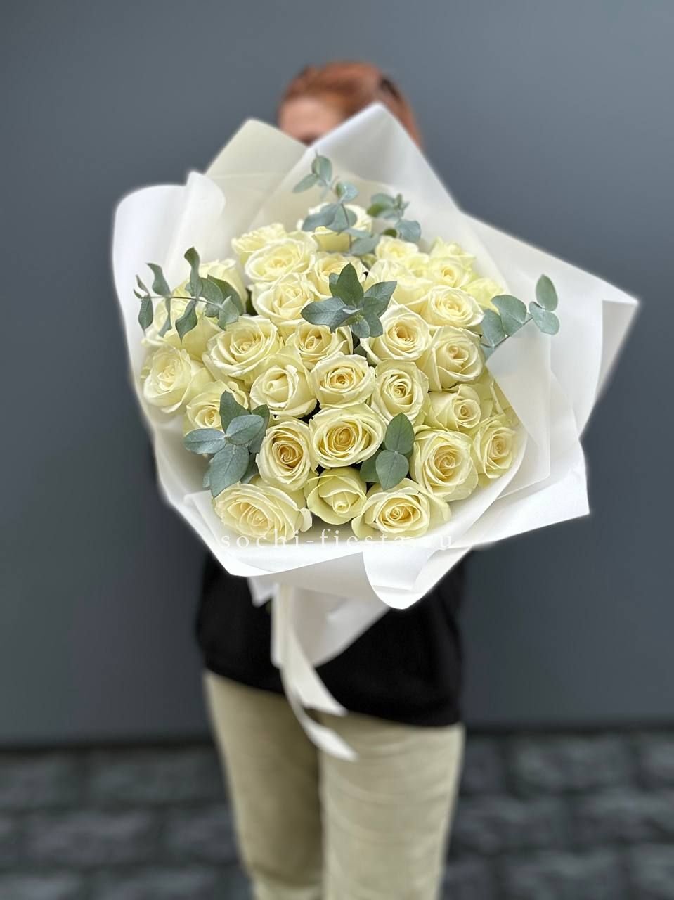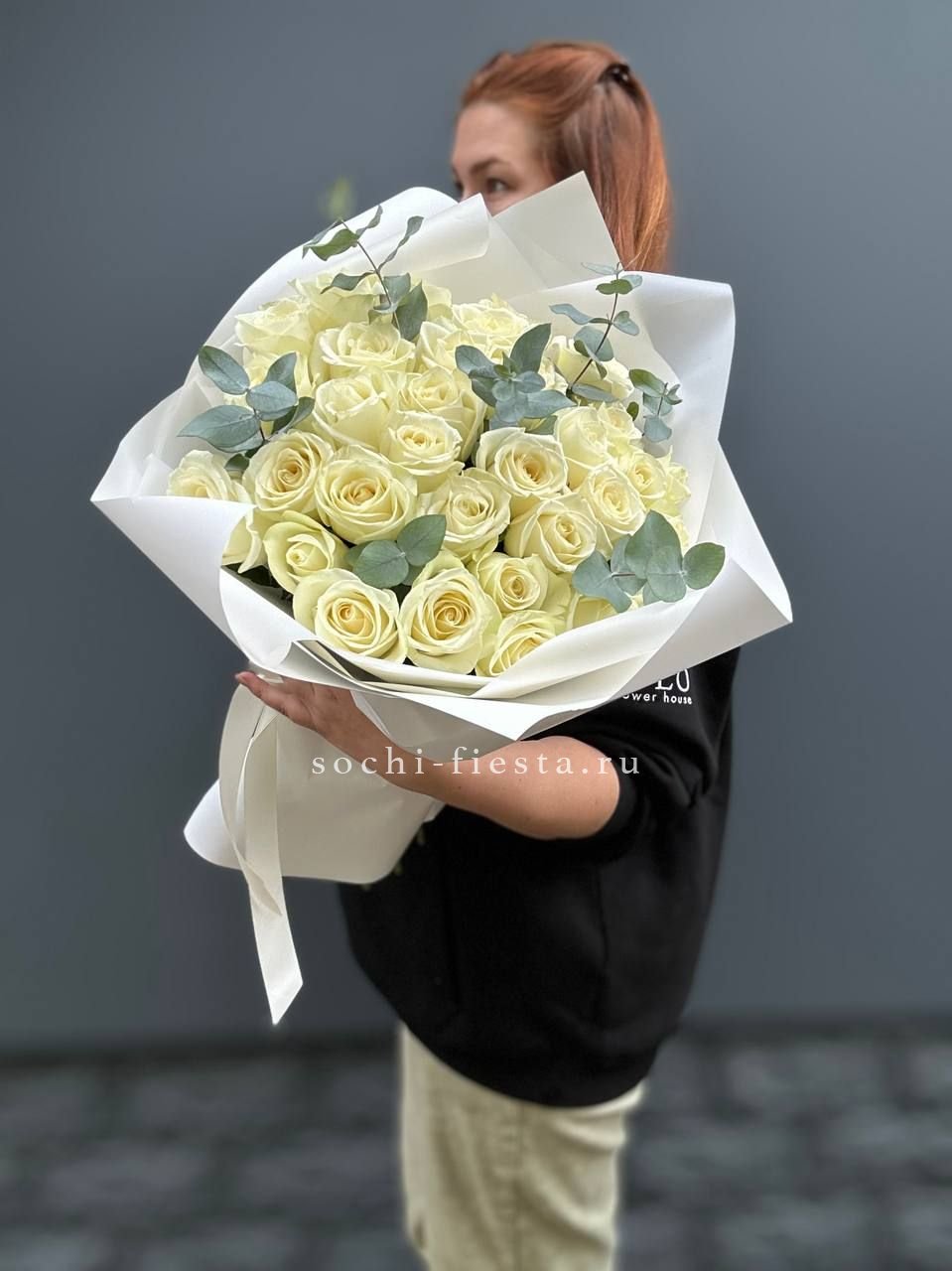 Пышный букет из белых роз