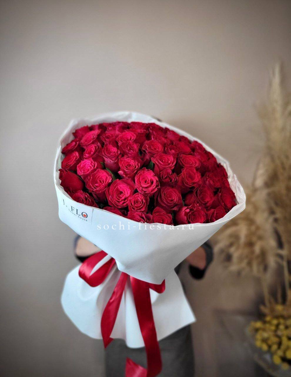 Для заказа товара "65 красных роз вайт" с доставкой в Кургане нажмите в корзину