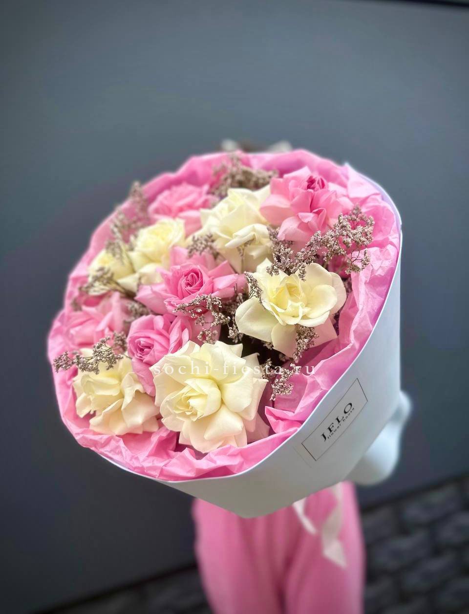 Мы работаем только со свежими цветами — букеты радуют от 7 до 14 дней и дольше при правильном уходе.