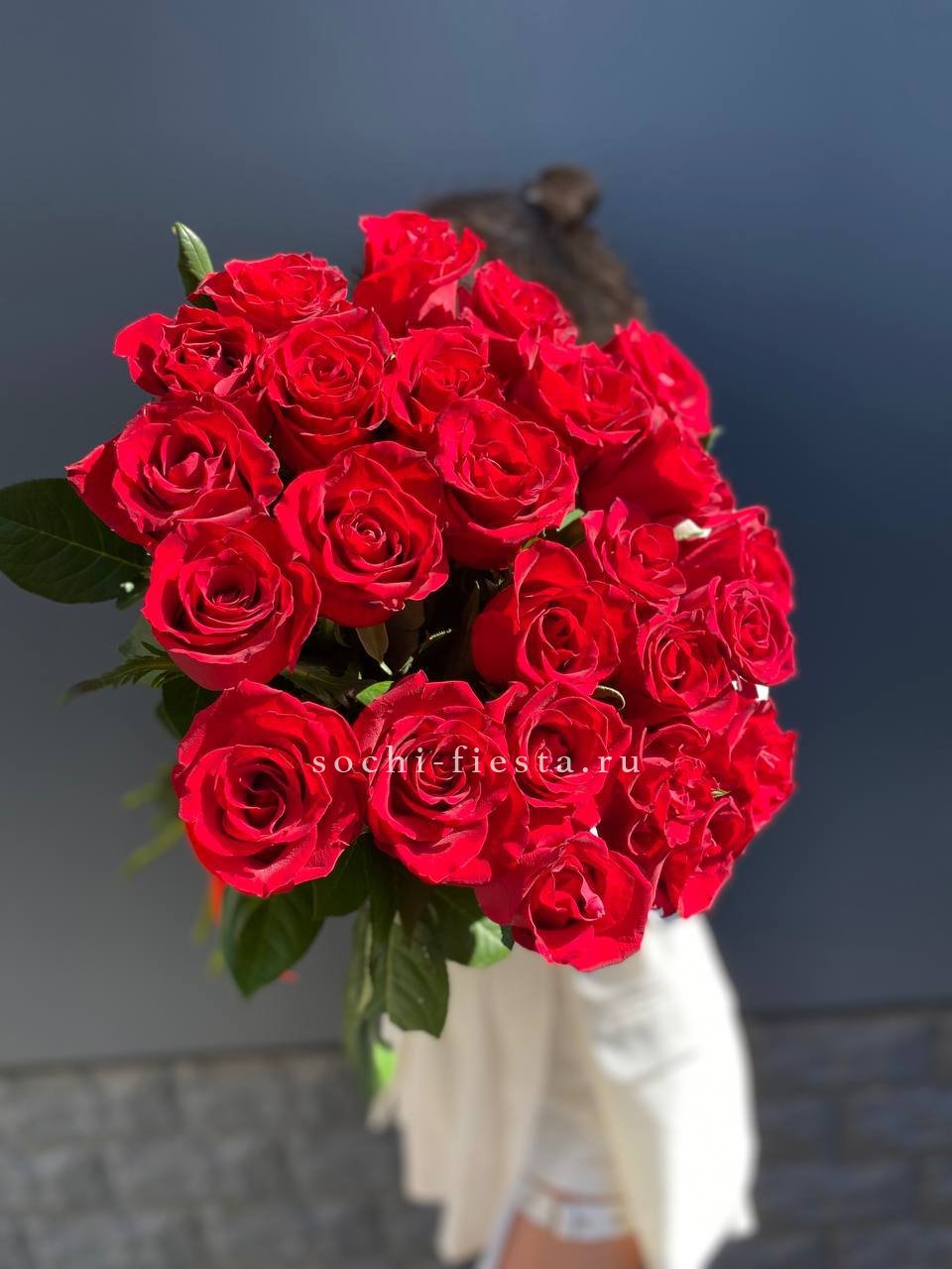 25 высоких красных роз