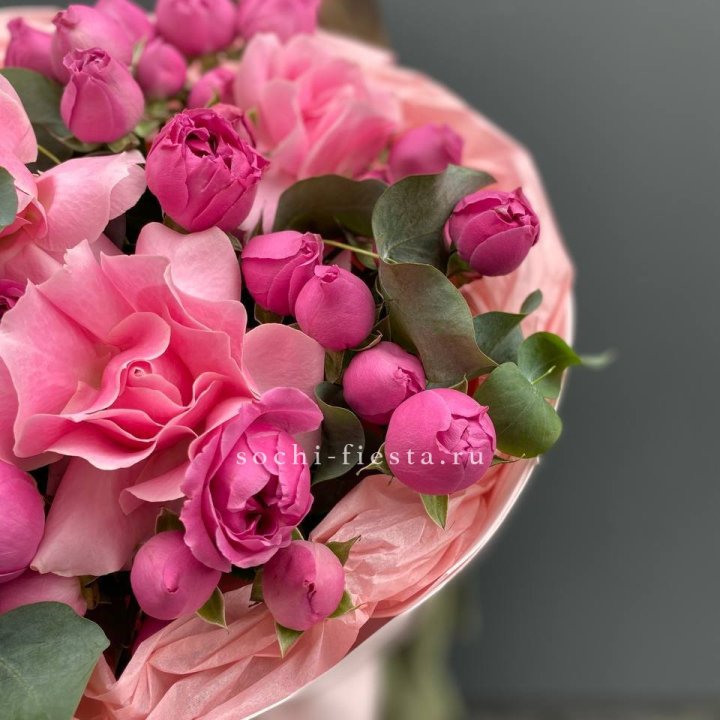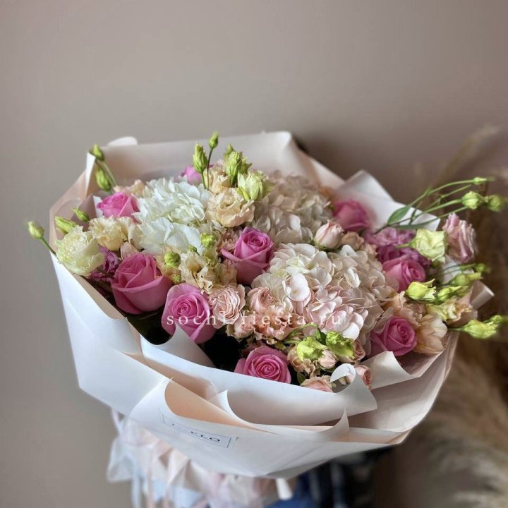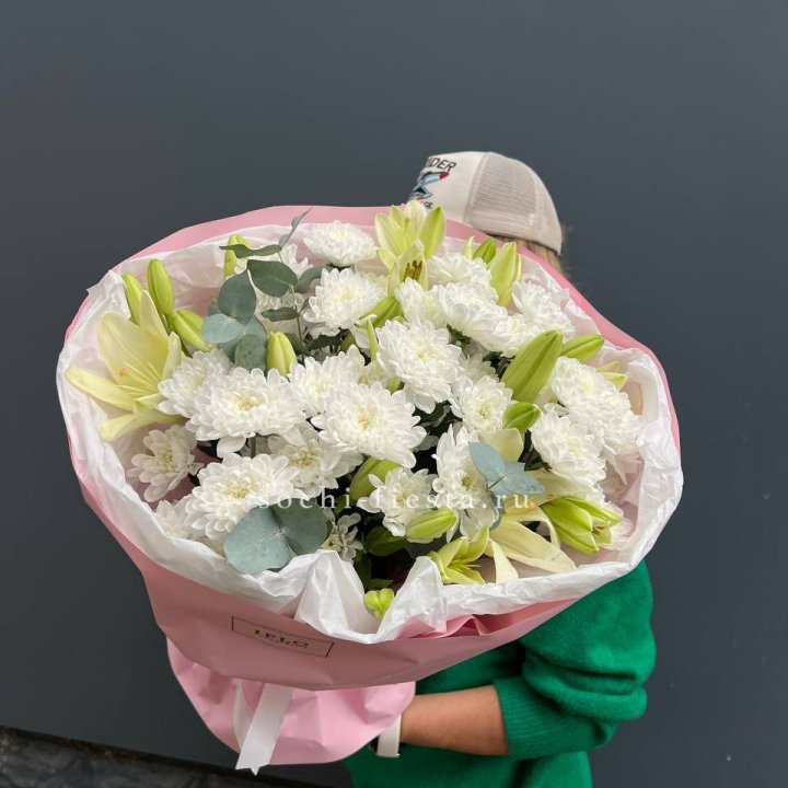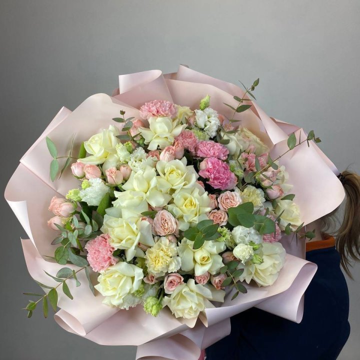 Зима и лето в Кургане — розы и хризантемы как основа. Эти виды стабильны в поставках круглый год. Флорист дополняет их сезонными акцентами: хвойные ветви зимой, открытая эустома летом. Сборный букет в любое время года выглядит живым и актуальным.