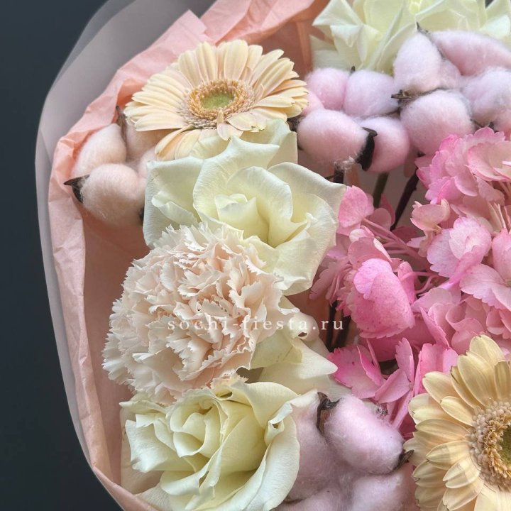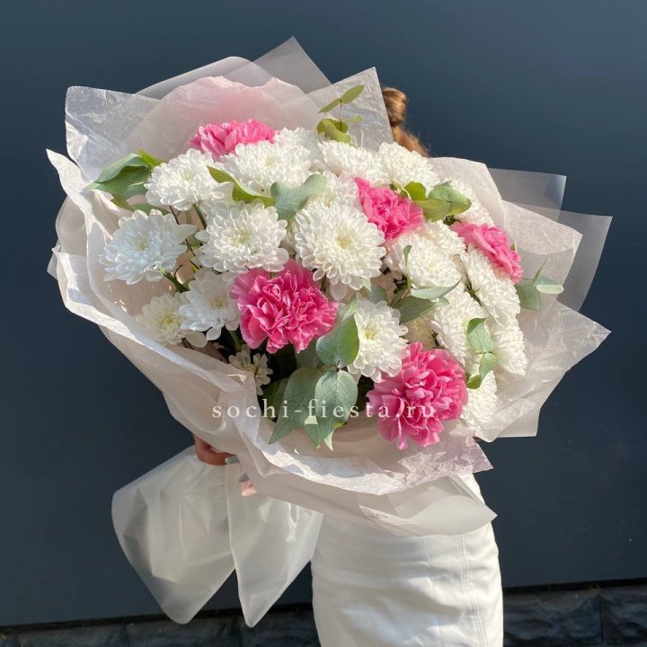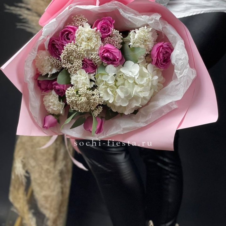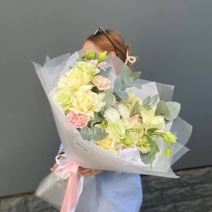 Зима и лето в Кургане — розы и хризантемы как основа. Эти виды стабильны в поставках круглый год. Флорист дополняет их сезонными акцентами: хвойные ветви зимой, открытая эустома летом. Сборный букет в любое время года выглядит живым и актуальным.