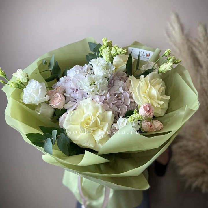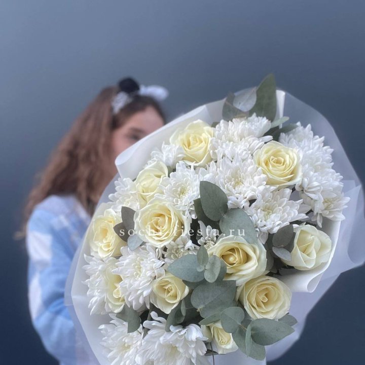 Зима и лето в Кургане — розы и хризантемы как основа. Эти виды стабильны в поставках круглый год. Флорист дополняет их сезонными акцентами: хвойные ветви зимой, открытая эустома летом. Сборный букет в любое время года выглядит живым и актуальным.