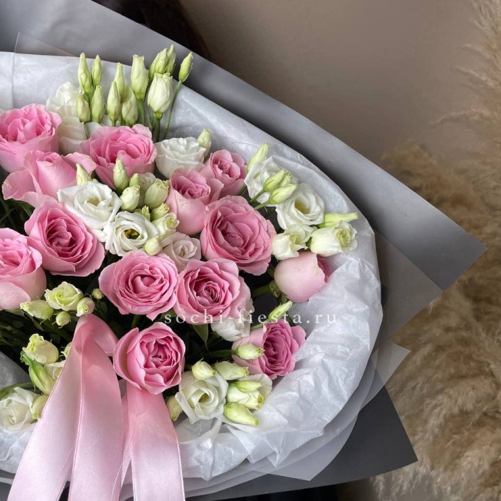 Зима и лето в Кургане — розы и хризантемы как основа. Эти виды стабильны в поставках круглый год. Флорист дополняет их сезонными акцентами: хвойные ветви зимой, открытая эустома летом. Сборный букет в любое время года выглядит живым и актуальным.