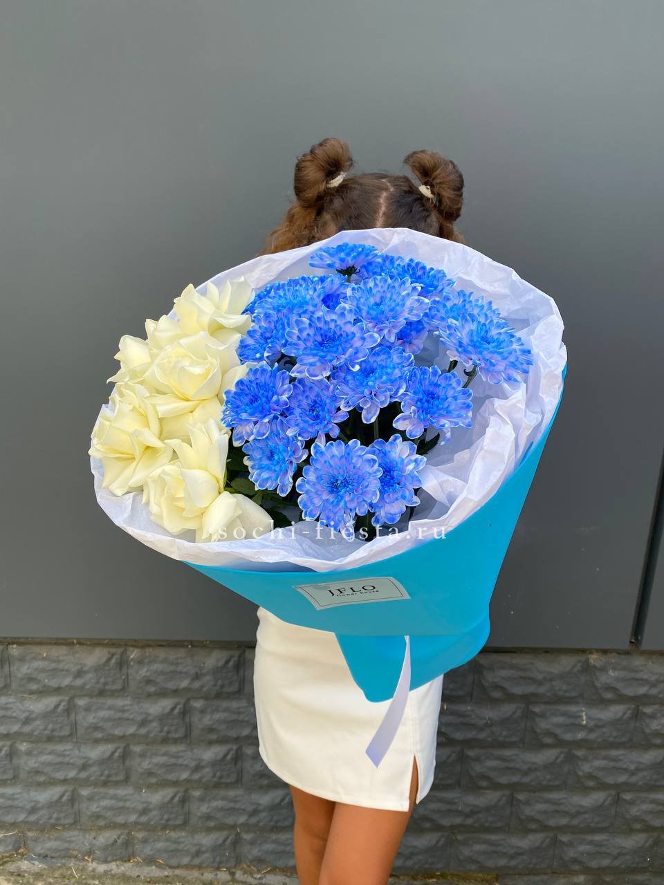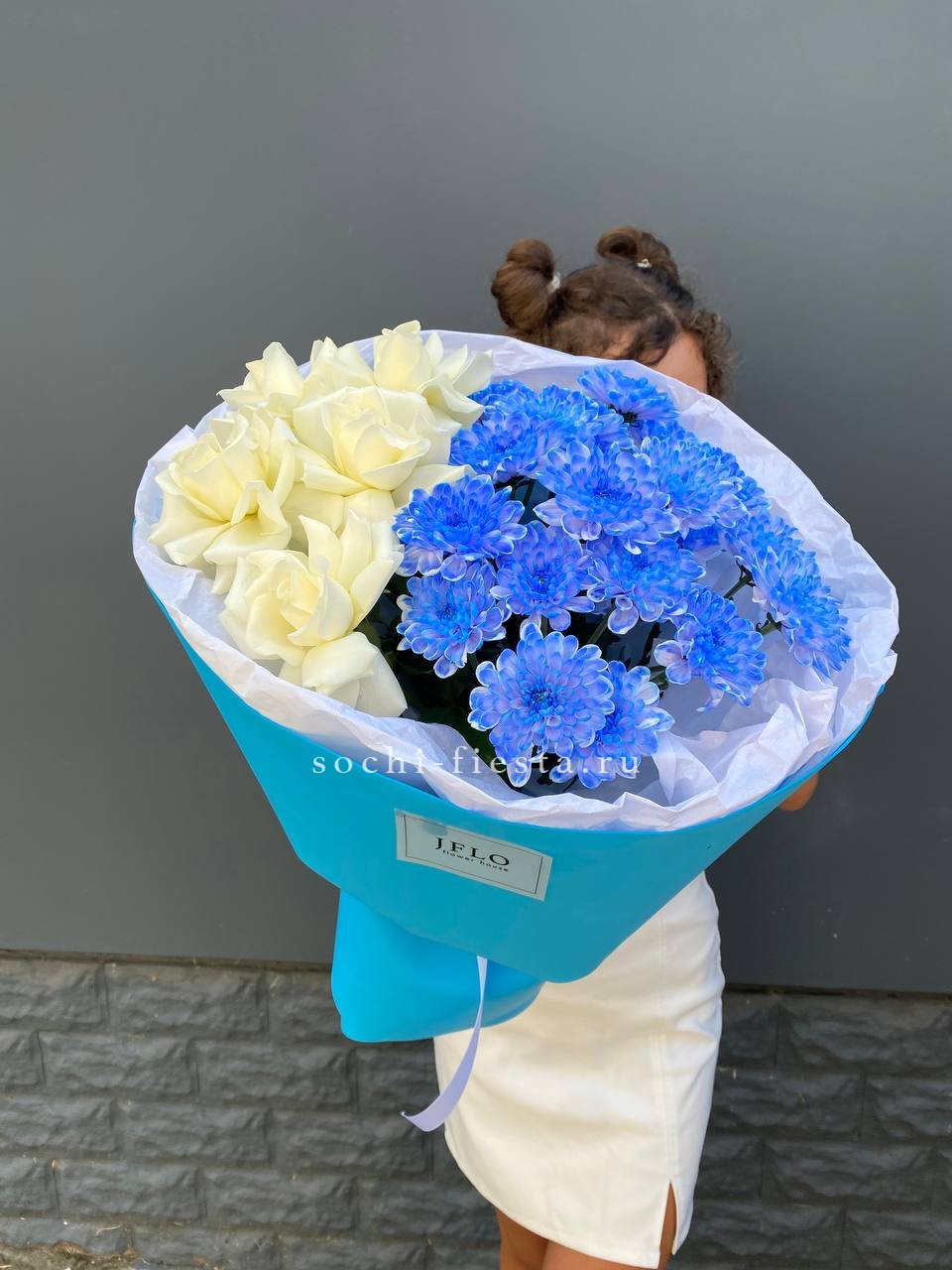 маттиола, розы, гортензия, диантусы, хризантемы , лента и дизайнерская пленка.