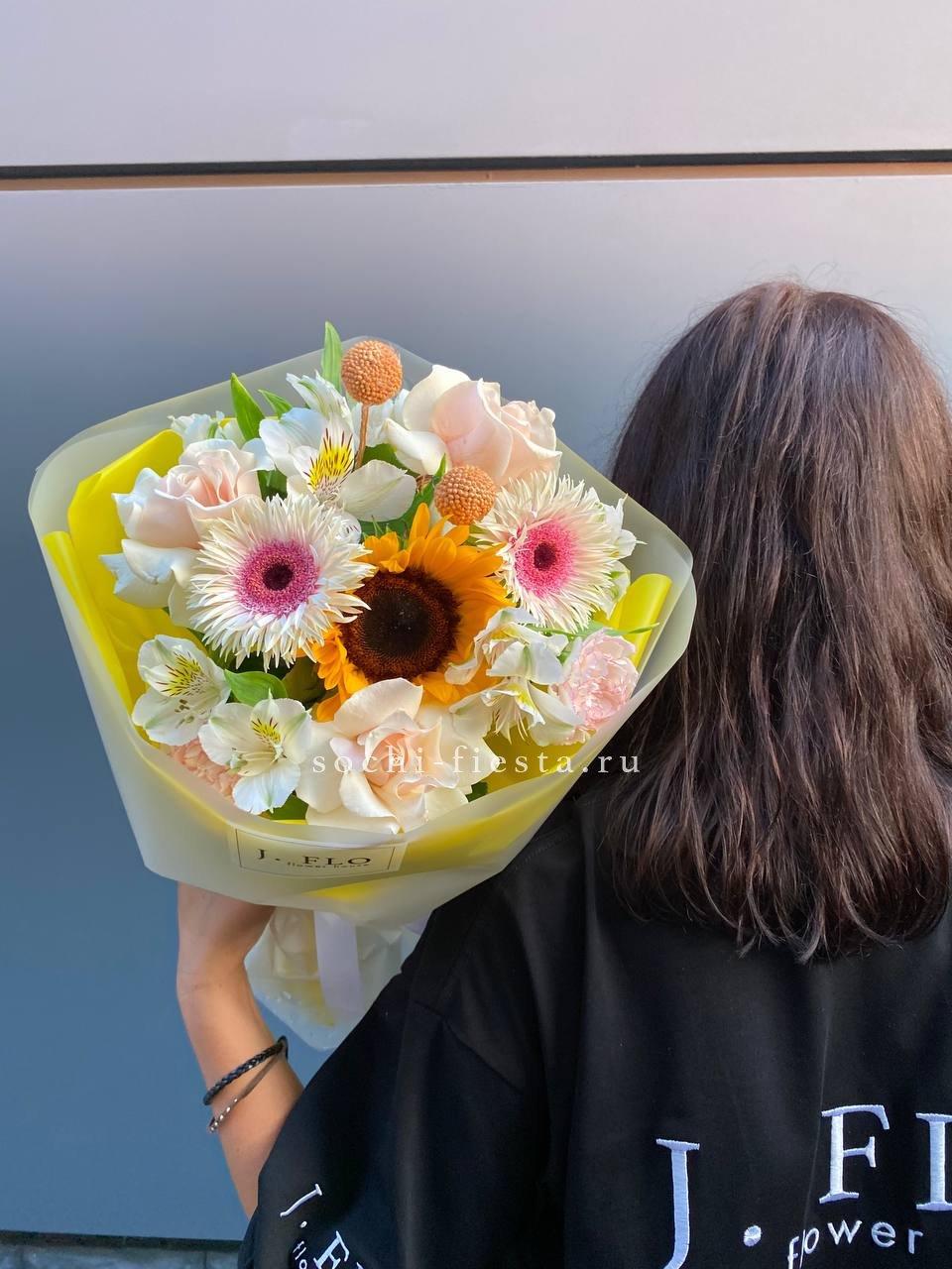 Букет с подсолнухом "Елоу"