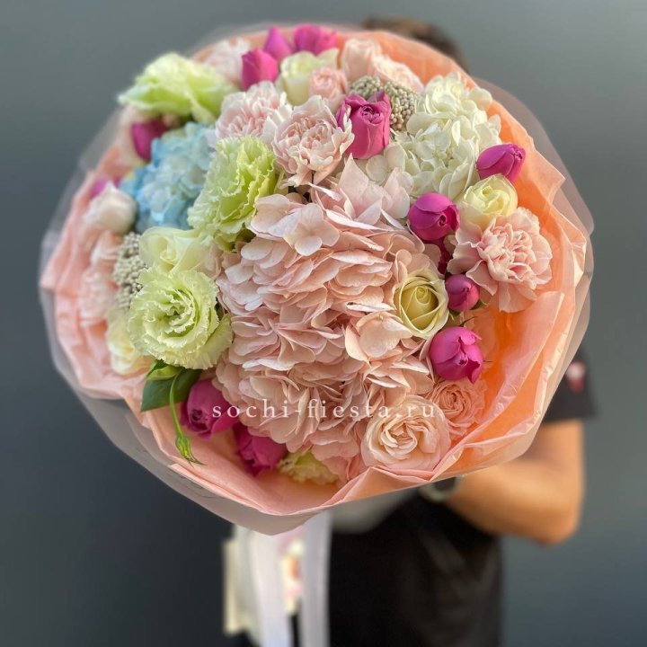 Сезонные позиции требуют предзаказа. Пионы в мае-июне — за 7-10 дней. Тюльпаны к 8 марта — за 5-10 дней. Амариллис зимой — за 3-5 дней. Подсолнухи летом — за 2-3 дня.