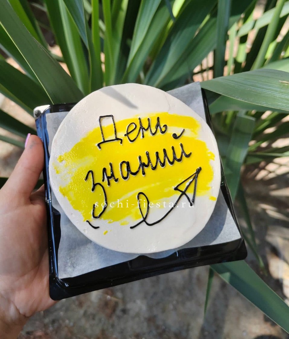 Компактный торт ручной работы с тематическим оформлением к началу учебного года. Два варианта начинки дают возможность выбрать вкус по настроению. Декор и упаковка уже включены в готовую композицию.