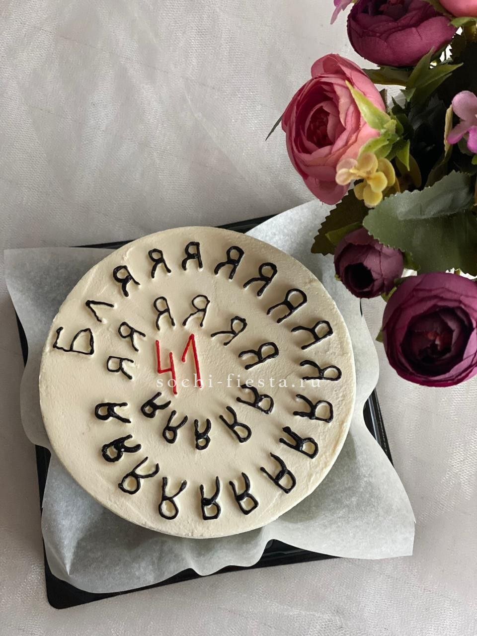 Ироничная надпись на кремовой поверхности задаёт тон всему десерту. Минималистичный дизайн и продуманная композиция создают лёгкое настроение без лишней торжественности.