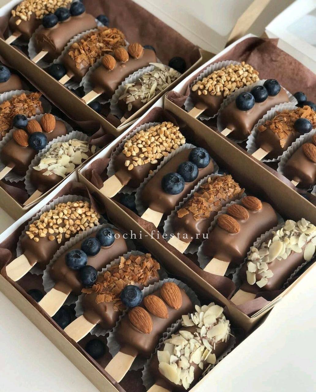 Внутри на выбор клубничный пломбир или шоколадный трюфель.